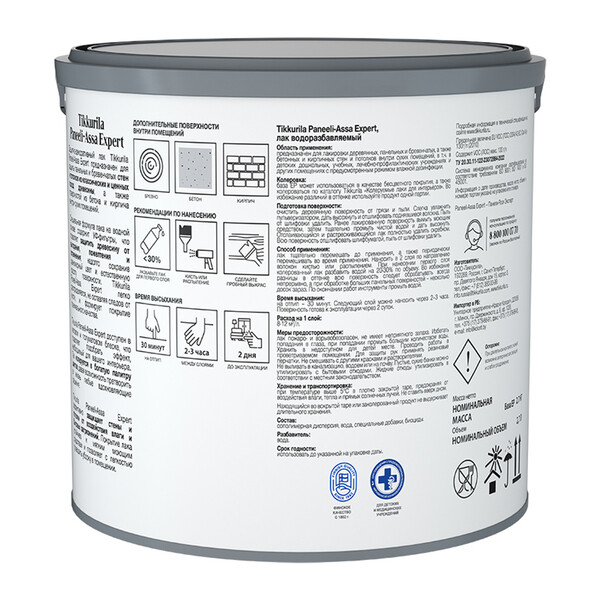 Водоразбавляемый, колеруемый акрилатный лак для внутренних помещений. Предназначен для лакировки деревянных, панельных и бревенчатых, а также бетонных и кирпичных поверхностей внутри здания. Не применять для лакировки полов и мебели.