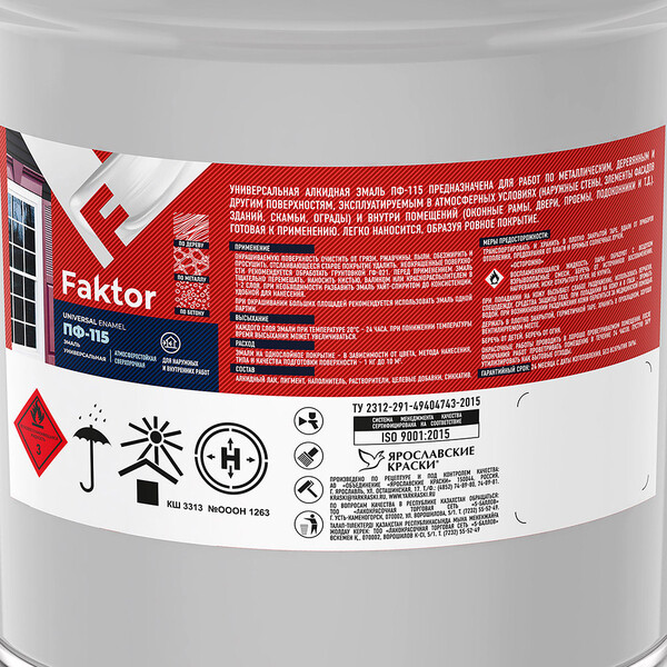 Универсальная эмаль для наружных и внутренних работ. Для работ по металлическим, деревянным и другим поверхностям, эксплуатируемым в атмосферных условиях (наружные стены, элементы фасадов зданий, скамьи, ограды) и внутри помещений (оконные рамы, двери, проемы, подоконники и т. д.).