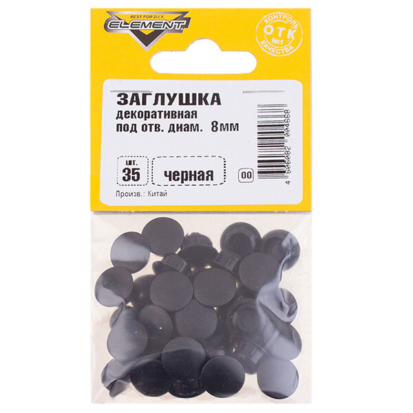 Заглушка декоративная пластиковая d8 мм черная (35 шт.)