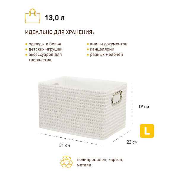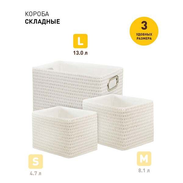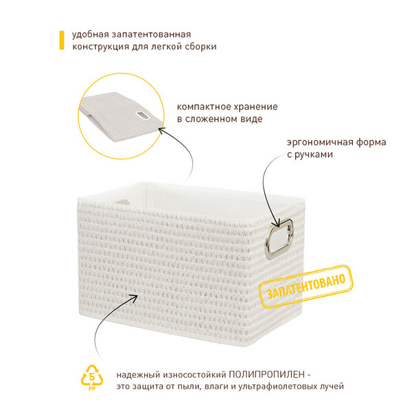 Короб для хранения позволяет эффективно организовать пространство в вашем доме. Изделие предназначено для хранения одежды, книг, игрушек и прочих вещей. Наличие ручек по бокам позволяет легко переносить короб. Конструкция короба складная, поэтому в сложенном виде предмет занимает минимум места.