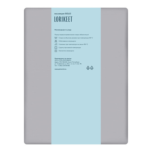 Комплект постельного белья 2-спальный сатин Lorikeet Solo серый с простыней 260х260 см