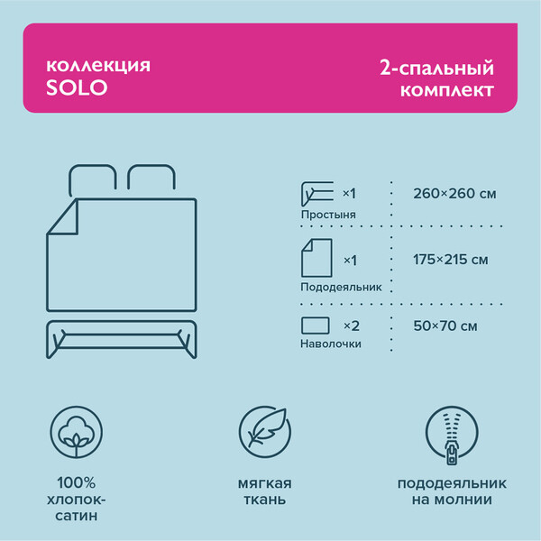 Комплект постельного белья из коллекции Solo выполнен из высококачественного хлопкового сатина.
