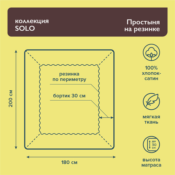 Простыни из коллекции Solo выполнены из высококачественного хлопкового сатина.
