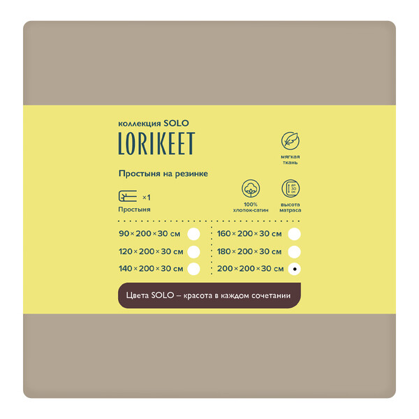 Простыня на резинке 200х200х30 см сатин латте Lorikeet Solo