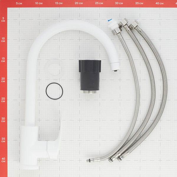Смеситель для кухни Rora с отдельным каналом для фильтрованной воды отличается универсальным характером: основной акцент в его дизайне приходится на плавные линии корпуса и трендовый белый цвет. К нему можно подключить фильтр любого производителя и наслаждаться чистой водой прямо из смесителя. Переключение между режимами подачи воды осуществляется только одной ручкой. Модель не требует дополнительного отверстия в мойке под фильтр. Электрофоретическое матовое покрытие делает поверхность смесителя устойчивой к условиям высокой влажности – такой смеситель прослужит дольше и сохранит свой первоначальный внешний вид.