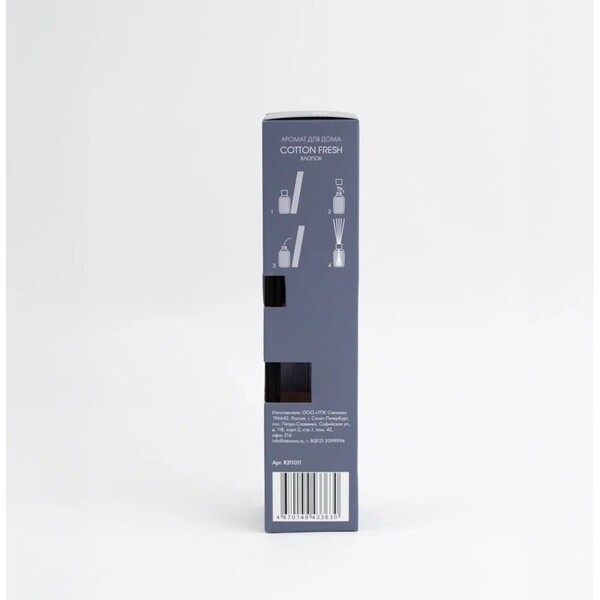 Аромадиффузор Cotton Fresh – это яркий аромат зелени и нежного цветущего хлопка. Ароматическая композиция на эфирной основе выпускается во флаконах объемом 50 мл. В каждой упаковке находится комплект из 5 палочек из микрофибры.