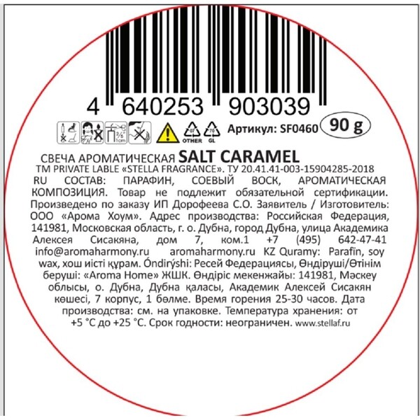 | Тип товара | Свеча ароматическая |