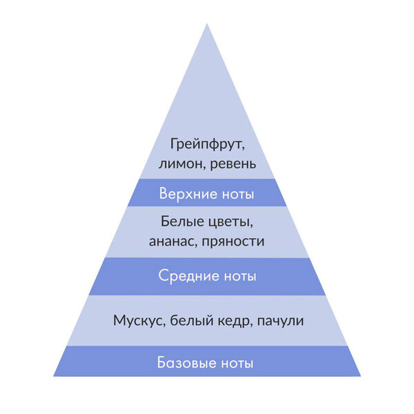 | Ноты аромата | Ананас, Белые цветы, Белый кедр, Грейпфрут, Лимон, Мускус, Пачули, Пряности, Ревень |