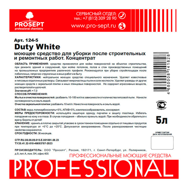 Предназначено для удаления известковых и гипсовых отделочных растворов. Связывает микрочастицы пыли и соли жесткости, тем самым позволяет ускорить время уборки помещения после побелочных, гипрочно-стружечных и иных работ. Не содержит агрессивных веществ, растворителей и щелочей. Средство применяется для мойки поверхностей на объектах строительства, при ремонте помещений и сооружений, при мойке потолков, полов и стен на промышленных предприятиях и в быту.