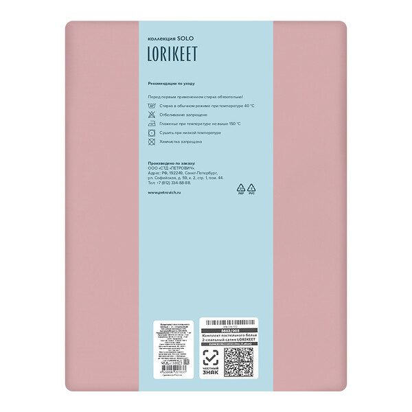 Комплект постельного белья 2-спальный сатин Lorikeet Solo пудровый с простыней 180х215 см