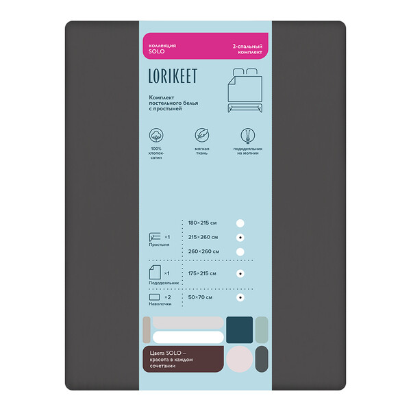 Комплект постельного белья из коллекции Solo выполнен из высококачественного хлопкового сатина. Пододеяльник в комплекте оснащен застежкой на молнии для дополнительной фиксации одеяла.