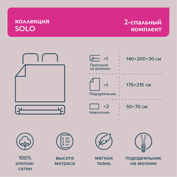 Комплект постельного белья из коллекции Solo выполнен из высококачественного хлопкового сатина.