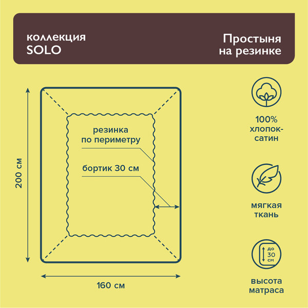 Простыни из коллекции Solo выполнены из высококачественного хлопкового сатина.