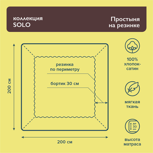 Простыни из коллекции Solo выполнены из высококачественного хлопкового сатина.