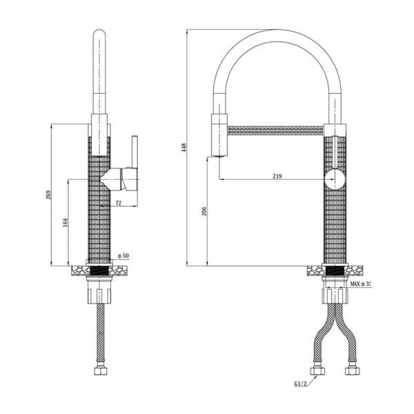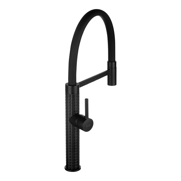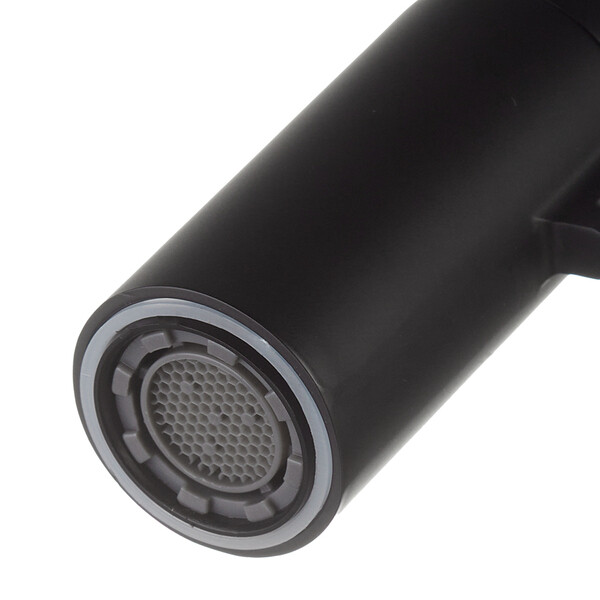 Смеситель для кухни изготовлен из высококачественной латуни. Корпус, стойкий к перепадам давления и температур, обладает антикоррозийными свойствами и безопасен для здоровья. Покрытие изделия черной матовой краской выполнено при помощи PVD-технологии, благодаря чему устойчиво к высоким и низким температурам, отличается гладкостью и прочностью. Смеситель комплектуется керамическим картриджем, который обеспечивает бесшумную работу изделия, плавное переключение ручки, а также точность регулировки температуры и напора воды. Угол поворота излива – 360°. Аэратор легко очищается и насыщает водную струю воздухом, что делает ее мягкой, снижает количество брызг и помогает экономнее расходовать воду. При завершении работы с выдвижным изливом лейка автоматически возвращается на место.