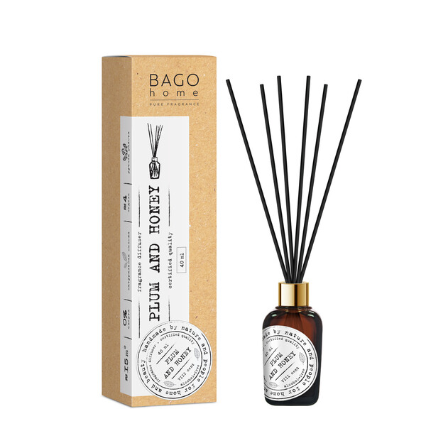 Ароматический диффузор Слива и мед 40 мл из коллекции ароматов Nature. Сладкие ноты спелой сливы с ароматным цветочным медом на мягкой мускусной основе. В комплекте 5 фибровых палочек из прессованного волокна. Время работы – от 4 до 6 недель. Площадь ароматизации – 15 м².