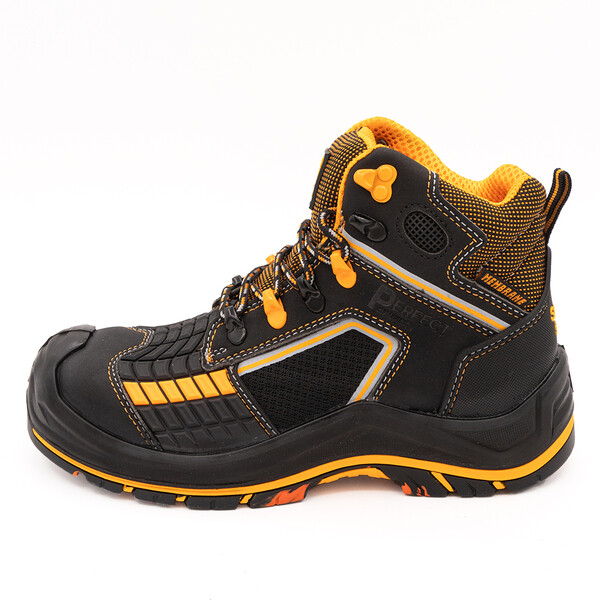 Ботинки «Perfect Protection» Premium Edition Кевлар. Материал верха – микрофибра – современный дышащий экологичный материал, который не боится моющих средств и намокания, стойкий к химическим реагентам, перепадам температур, и обеспечивает высокую прочность соединения верха обуви с литьевой полиуретановой подошвой. Подошва – двухслойная, устойчивая к воздействию нефти, нефтепродуктов, щелочей концентрации до 20%, повышенных температур. Верхний слой из полиуретана обладает амортизирующими свойствами, гасит ударные нагрузки, а также придает обуви легкость, комфортность и повышенные теплозащитные свойства. Ходовой слой изготовлен из износостойкой, термостойкой (+300°С / 60 с), морозостойкой резины на основе нитрильного каучука с улучшенным сопротивлением скольжению, стойкостью к деформациям, истиранию. Для защиты от ударов в носочной ча...