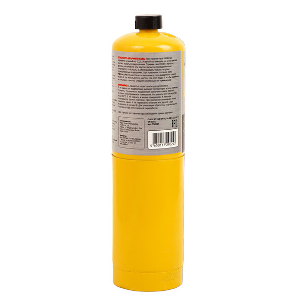 Одноразовый резьбовой баллон с MAPP газом. Вес газа – 453,6 гр. Объем баллона – 1000 мл. Температура горения газ – 2000 С. Резьбовое соединение – CGA600. Сделано в Китае.