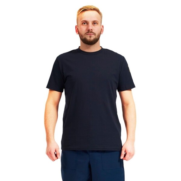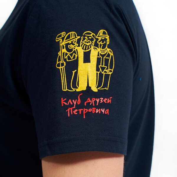 Футболка с короткими рукавами, с круглой горловиной, на левый рукав нанесен логотип клуба друзей Петровича. Способ нанесения – термопечать.
