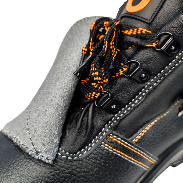 Ботинки "Сварщика" отлично подойдут для использования при сварочных работах. Обувь изготовлена методом прямого литья. Защитный кожаный клапан защищает шнуровку и фиксируется ремешком с пряжкой. Носок из поликарбоната обеспечивает защиту от ударов в носочной части 200 Дж и проколов. Материал верха обуви, термостойкая водоотталкивающая кожа толщиной 1,8 – 2 мм, со специальным покрытием, которая защищает от контактов с агрессивной средой: нефть, растворы кислот и щелочной концентрации до 20%, общих производственных загрязнений. Подошва двухслойная, полиуретан и нитрильная резина, устойчива к контакту с нагретой поверхностью, до 300 градусов Цельсия, с улучшенным сопротивлением к скольжению и деформациям. Металлическая антипрокольная стелька обезопасит стопу ноги от порезов и проколов.