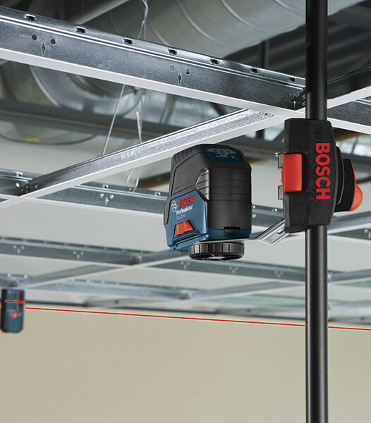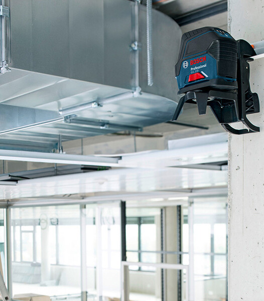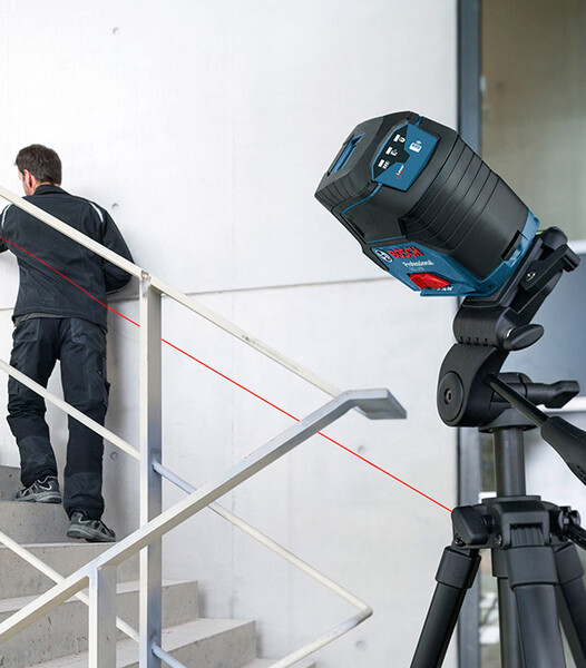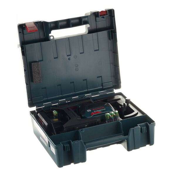 Прибор сочетает в себе превосходный обзор и интеллектуальные функции: точное позиционирование лазерных линий вокруг точек основания перпендикуляра — позиционирование электроприводом с помощью RM 3 Professional (опция), приложения или пульта дистанционного управления (опция), или ручное позиционирование с помощью RM 2 Professional (опция). Высокая видимость лазерных лучей в рабочем диапазоне 20 м (без приемника). Дальность действия 50 м с приемником LR 6. Фиксатор маятника обеспечивает безопасную транспортировку. Красные горизонтальные и вертикальные линии для улучшения обзора. Bluetooth®-соединение со смартфоном для дистанционного управления и настройки прибора. Два источника питания: от аккумулятора 12 V-LI или от обычных щелочных батарей. В комплект входит приемник лазерного излучения Bosch LR 6 Professional.