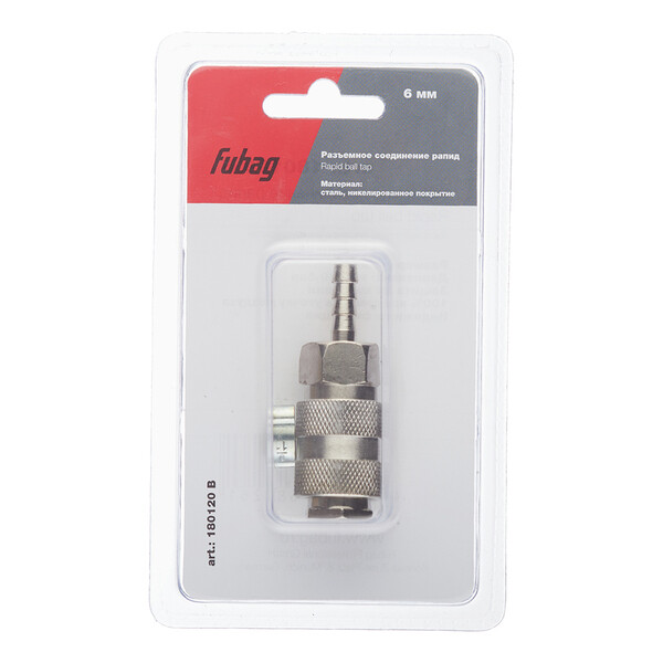 Переходник рапид-елочка для подключения компрессора к пневмоинструменту с помощью шланга. Диаметр шланга 6 мм. Крепление к инструменту – рапид, к шлангу – елочка. Обжимное кольцо 9x11 мм в комплекте. Поставляется в блистере.