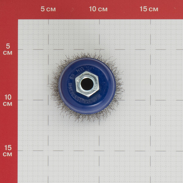 Чашеобразная кордщетка для угловых шлифмашин до 12500 об/мин. Резьбовая посадка на шпиндель. Гофрированная стальная проволока. Для обработки дерева, снятия краски, шлифовки металла, снятия ржавчины, обработки сварных швов.