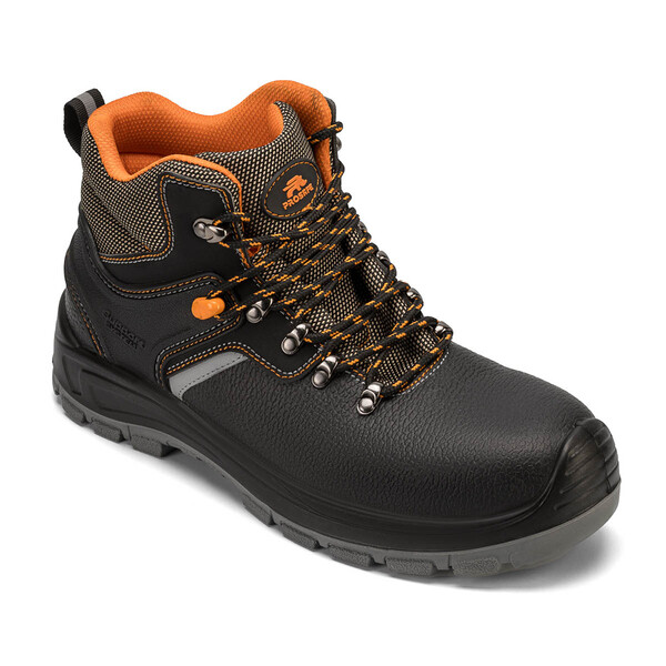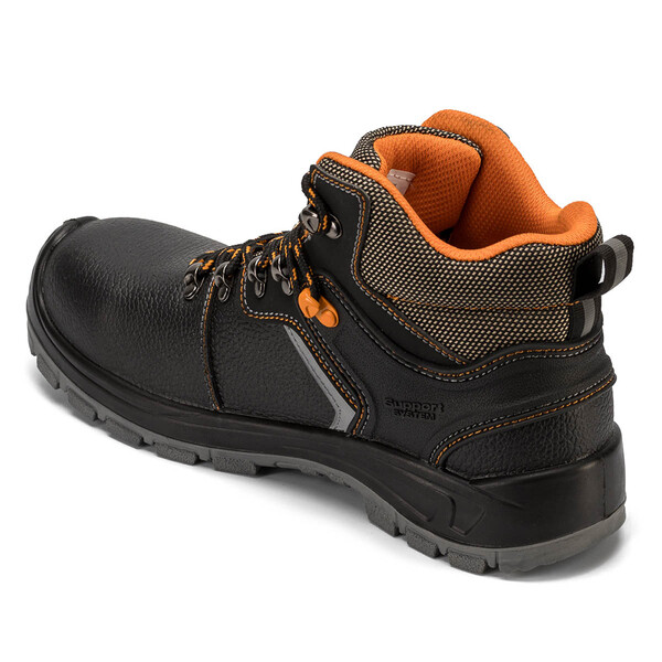 Ботинки Orange Profi предназначены для эксплуатации в помещениях и сезонной носке на открытом воздухе. Верх обуви комбинированный – союзка, нижняя часть берца и задинка из натуральной кожи, язычок, полуглухой клапан и верхняя часть берца – из прочного текстиля. Вставка из ТПУ в пяточной части, обеспечивает дополнительную прочность, фиксацию и поддержку стопы. На берцах и заднике используются светоотражающие элементы. Подкладка трикотажная, с отличными гигиеническими свойствами. Вкладная стелька съемная, анатомическая. Мягкий кант, полуглухой клапан и мягкий язычок обеспечивают хорошее прилегание и защиту от попадания посторонних предметов внутрь обуви. В обуви применена система быстрой шнуровки. Для защиты от ударов в носочной части установлен композитный подносок (200 Дж). Защиту стопы от проколов обеспечивает кевларовая стелька (1200Н...