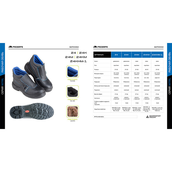 Ботинки из натуральной кожи Prosafe серии basic c защитным фронтальным клапаном, препятствующим попаданию искр, предназначены для защиты ног от общих производственных загрязнений в отапливаемых помещениях и на открытом водухе в летний период. Сетчатая подкладка создает комфортные условия носки в течение рабочей смены. В модели предусмотрена текстильная съемная стелька. Светоотражающие элементы повышают видимость работников в темное время суток, а также на неосвещенной территории. Подошва – двухслойная, маслобензостойкая, литьевого метода крепления. Промежуточный слой изготовлен из ПУ с внутренней амортизирующей вставкой в пяточной части подошвы, способной гасить ударные нагрузки при ходьбе. Ходовой слой – износостойкая термостойкая нитрильная резина, способная защитить стопу от кратковременного контакта подошвы с нагретой поверхностью ...