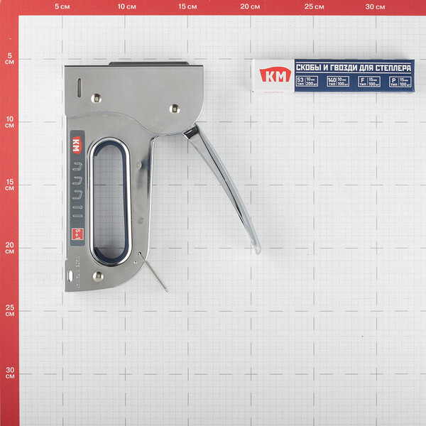 Предназначен для крепления с помощью П-образных скоб (тип 53, тип 13) высотой 6-14 мм, П-образных скоб тип 140 высотой 8-14 мм, гвоздей типа F высотой 15 мм и шпилек типа P высотой 15 мм различных материалов, таких как панели ПВХ, ДВП, фанера и др.