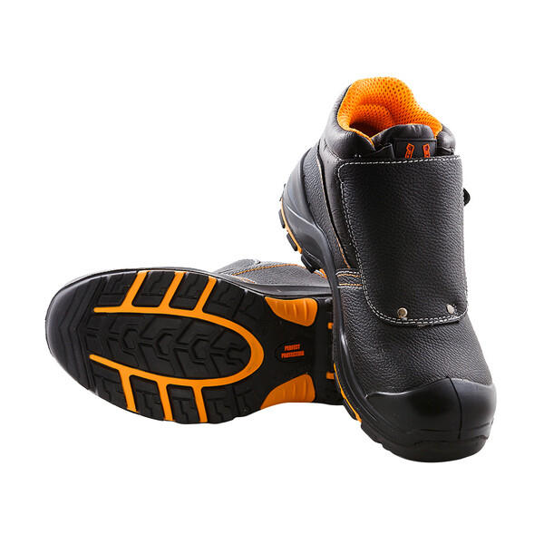Ботинки "Сварщика" отлично подойдут для использования при сварочных работах. Обувь изготовлена методом прямого литья. Защитный кожаный клапан защищает шнуровку и фиксируется ремешком с пряжкой. Носок из поликарбоната обеспечивает защиту от ударов в носочной части 200 Дж и проколов. Материал верха обуви, термостойкая водоотталкивающая кожа толщиной 1,8 – 2 мм, со специальным покрытием, которая защищает от контактов с агрессивной средой: нефть, растворы кислот и щелочной концентрации до 20%, общих производственных загрязнений. Подошва двухслойная, полиуретан и нитрильная резина, устойчива к контакту с нагретой поверхностью, до 300 градусов Цельсия, с улучшенным сопротивлением к скольжению и деформациям. Металлическая антипрокольная стелька обезопасит стопу ноги от порезов и проколов.