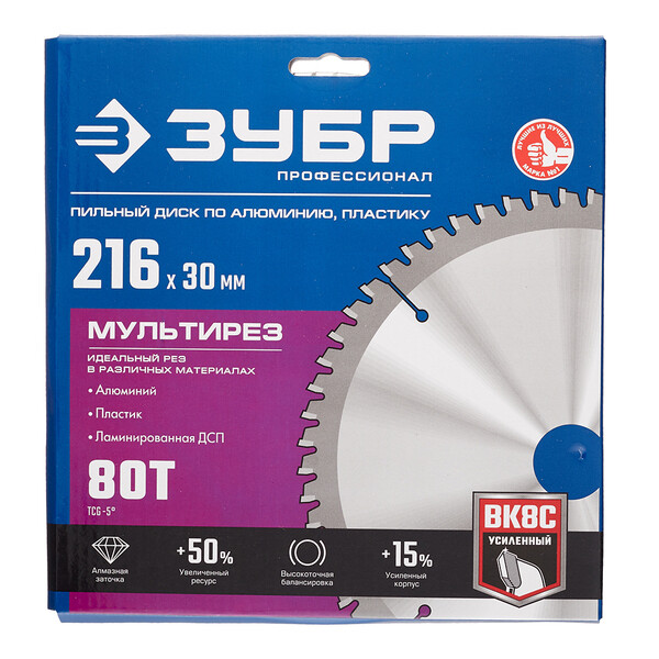 Твердосплавные резцы марки ВК8С. Автоматизированная высококачественная пайка для надежного крепления зубьев. Закаленный корпус из высоколегированной стали препятствует возникновению биений при работе. Компьютерная балансировка диска для предотвращения биений при работе. Автоматическая трехсторонняя шлифовка зубьев для максимально точной геометрии режущих элементов и чистого реза. Компенсационные прорези исключают внутреннее напряжение и деформацию диска, возникающую при его перегреве во время эксплуатации.
