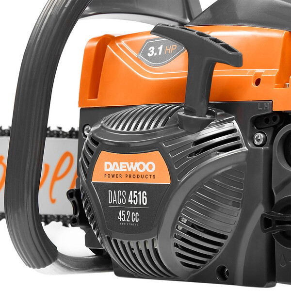 Пила цепная бензиновая DACS 4516 Daewoo продается в комплекте с чехлом, что является выгодным бонусом к широким возможностям устройства. Несмотря на то, что модель разработана для бытового применения, она отличается хорошей производительностью и функциональностью. Цепная пила имеет длину шины в 40 сантиметров, что позволит довольно быстро распилить бревно толщиной в 35 см. DACS 4516 оснащен двухтактным двигателем собственного производства, который обеспечивает высокую надежность и продуктивность.