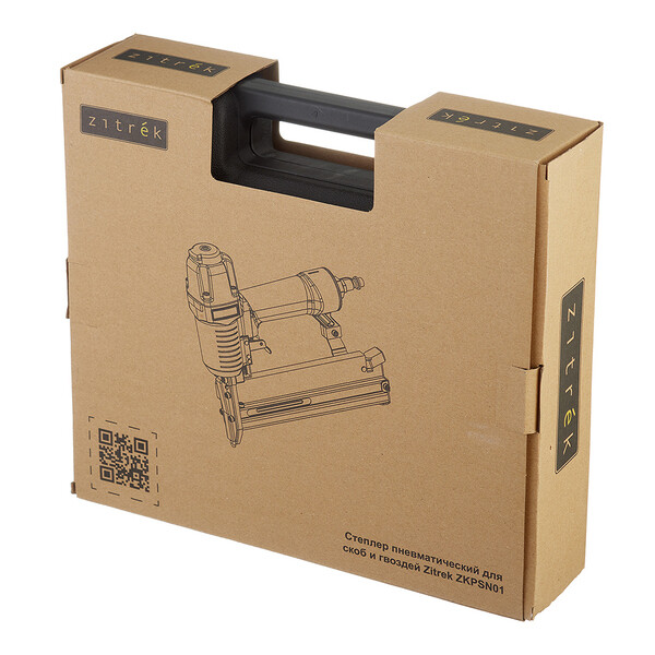 Степлер пневматический для скоб и гвоздей Zitrek ZKPSN01 применяется в производстве и ремонте мебели, настилке полов и т.д. В качестве оснастки используются как скобы, так и гвозди. Модель работает на сжатом воздухе, что значительно продлевает его время работы без остановки и снижает пожаро – и взрывоопасность рабочего процесса. Рукоятка пневмостеплера оснащена прорезиненной накладкой для более надежного хвата. Тип гвоздей – 47/F/055/049/300/J/SK50 Тип скоб – 4/55/90/18GA