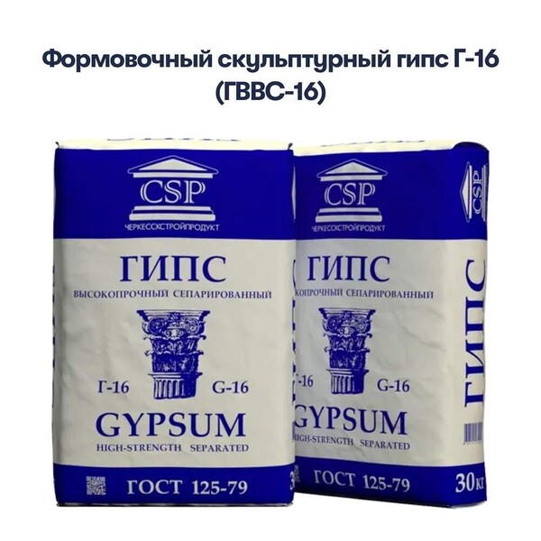 Формовочный скульптурный гипс Г-16 (ГВВС-16), используется для изготовления капов и форм в керамическом и фаянсовом производстве, для производства декоративных лепных изделий, в скульптурных работах и при изготовлении строительных сухих смесей.