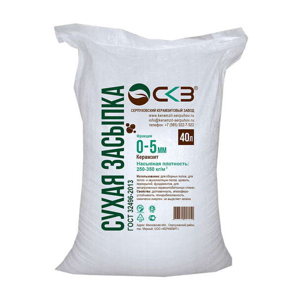 Экологически чистый материал, обладающий высокими тепло – и звукоизоляционными свойствами, не разрушается при замораживании, огнестоек, не подвержен гниению. Предназначен в качестве насыпного теплоизоляционного материала в кровлях, перекрытиях, в качестве сухой засыпки для выравнивания полов. В зависимости от региона выработки, цвет керамзита изменяется от сероватого до красноватого, что никак не влияет на его качество.