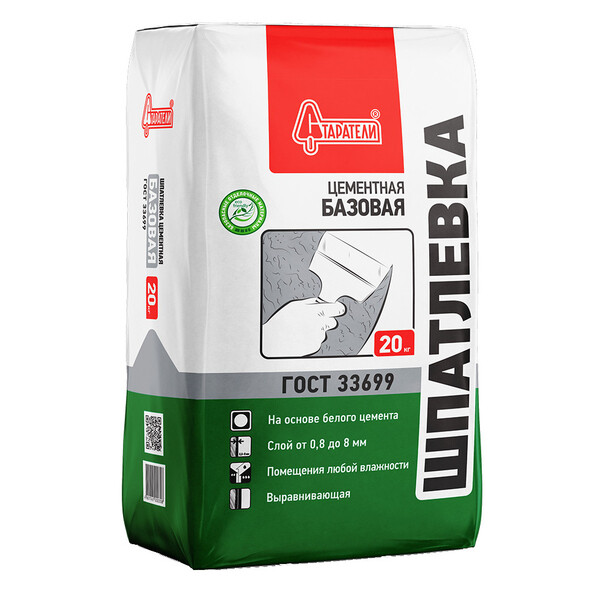 Сухая смесь изготовлена на основе белого цемента с добавлением минеральных наполнителей и высококачественных модифицирующих добавок. Предназначена для выравнивания стен из бетона, кирпича и оштукатуренной поверхности в помещениях любой влажности под последующую отделку. Рекомендуется для заделки швов и стыков глубиной до 8 мм. Служит для ручного и машинного нанесения.