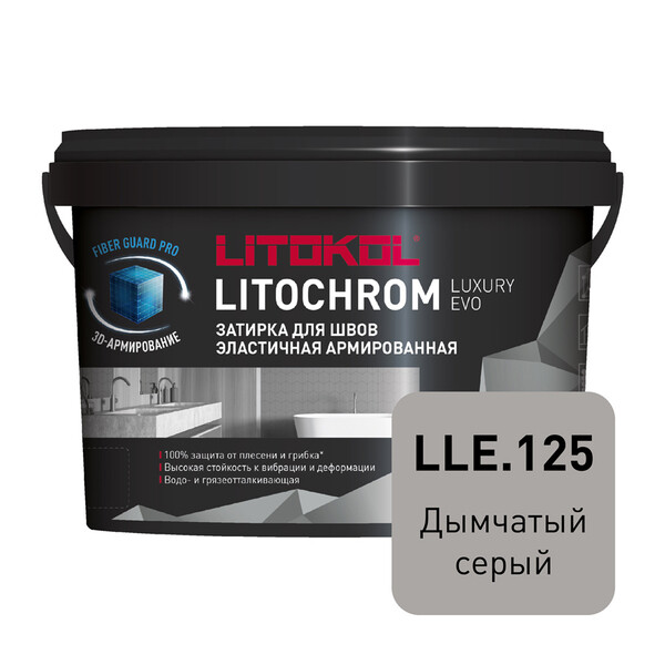 LITOCHROM LUXURY EVO — эластичная водоотталкивающая цементно-полимерная затирка с защитной системой LitoProtect® для заполнения межплиточных швов шириной 1–10 мм включительно. Смесь с пониженным водопоглощением, с повышенной стойкостью к истиранию, относится к классу CG2WA согласно классификации ГОСТ Р 58271. Предназначена для затирки швов при облицовке стен и полов керамической плиткой, стеклянной мозаикой, керамогранитом, натуральным камнем, агломератом.