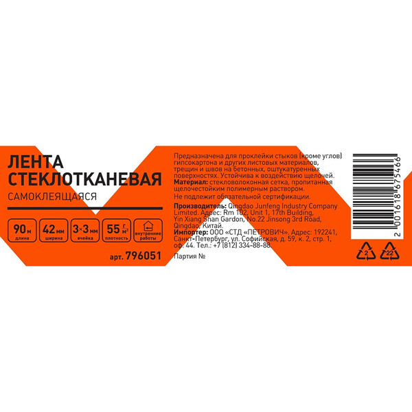 Предназначена для проклейки стыков (кроме углов) гипсокартона и других листовых материалов, трещин и швов на бетонных, оштукатуренных поверхностях. Устойчива к воздействию щелочей.
