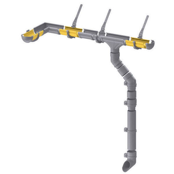 Предназначен для организованного сбора и отвода дождевой воды с поверхности крыши. Элементы просто соединяются друг с другом и легко защелкиваются. При этом каждое соединение трубы или желоба с фитингом являются компенсатором температурного расширения/сжатия.