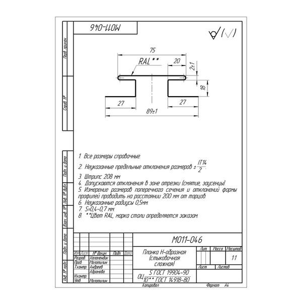 | Тип товара | H-профиль |