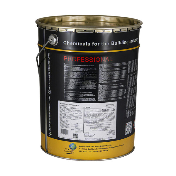 Полиуретановая мастика Hyperdesmo относится к профессиональной линейке гидроизоляции, произведенной в Греции. Легко наносится и полимеризуется под воздействием влажности воздуха, образуя бесшовную мембрану по всей площади нанесения. Используется для гидроизоляции как внутренних, так и наружных помещений. Представляет собой однокомпонентный жидкий материал на основе чистых водоотталкивающих эластичных полиуретановых смол. Предназначена для использования на бетонной стяжке, шифере и плитке, металлических поверхностях, на основаниях из дерева, а также для ремонта битумных кровель.