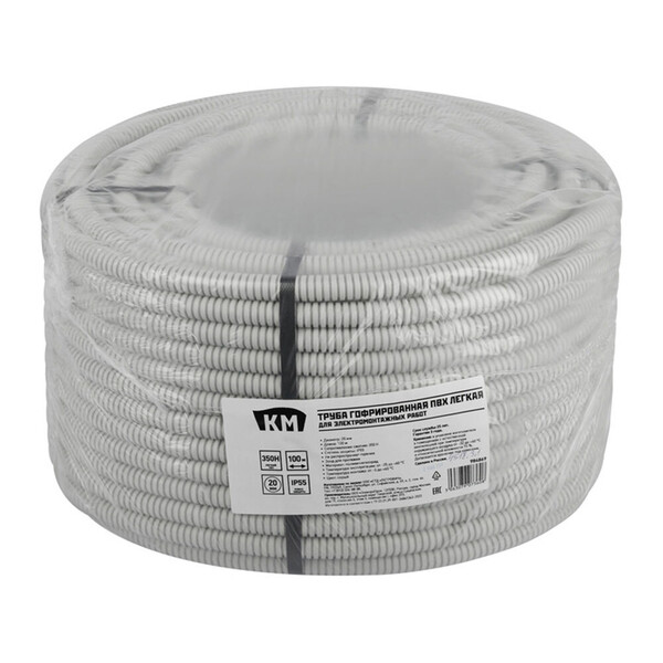 Труба гофрированная ПВХ 20 мм КМ легкая с зондом серая (100 м) (Б0060600)