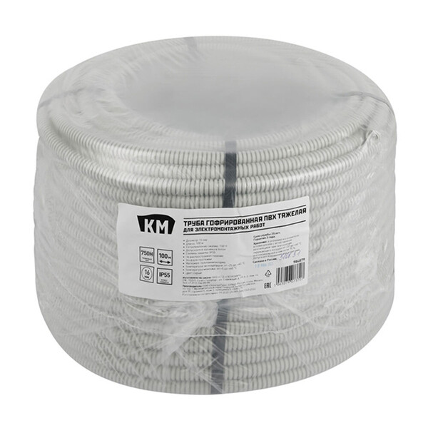 Надёжное решение для прокладки электрических коммуникаций скрытого типа: стенные штробы, пустоты фальш-потолков и фальш-стен, пространство под фальш-полами. Тяжёлые гофрированные трубы КМ из ПВХ защищают силовые, слаботочные провода и кабели от негативного воздействия окружающей среды, механических повреждений. Высокие эксплуатационные характеристики позволяют применять ПВХ-гофротрубы КМ тяжёлого типа при прокладке сложных систем и трасс. Гофрированные ПВХ-трубы КМ изготовлены из невоспламеняющихся материалов, не поддерживающих горение. Отличаются высокой ударной прочностью: 750Н. Широко применяются с электрическими, компьютерными и телефонными кабелями. Надёжное решение при строительстве, реконструкции и ремонте самых разных объектов – жилых домов, офисных зданий, промышленных и складских сооружений.