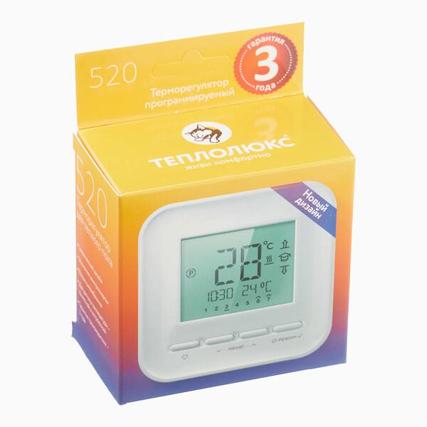Терморегулятор Теплолюкс 520 предназначен для управления теплыми полами, с целью поддержания комфортной температуры в то время, когда в этом есть необходимость. Функция программирования позволяет ему, основываясь на характеристиках помещения, заранее включать обогрев с таким расчетом, чтобы достигнуть комфортной температуры точно в заданное пользователем время. Терморегулятор Теплолюкс 520 снабжен символьным дисплеем. Контрастные и хорошо читаемые цифры и пиктограммы интуитивно понятны для пользователя.