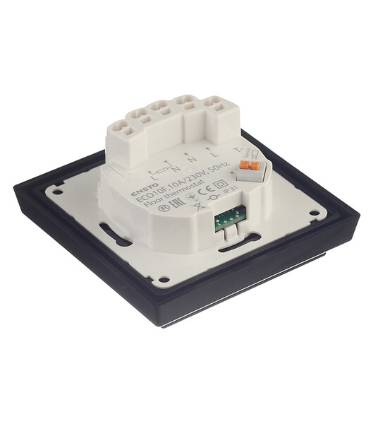 Терморегулятор для теплого пола черного цвета предназначенный для автоматического поддержания заданной температуры. Есть возможность ограничить минимальную и максимальную температуры регулировки (защита от детей). Работает при отрицательной температуре.