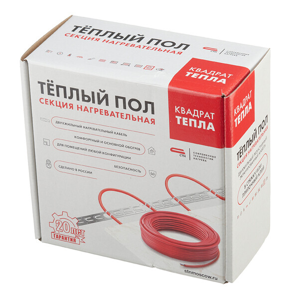 Электрические системы обогрева пола на основе двухжильного резистивного кабеля являются готовым решением для обеспечения дополнительного и основного обогрева помещения. Регулировка температуры в помещении производится терморегулятором, который подключается к системе теплого пола. Теплый пол кабельный Квадрат тепла защищен от механических повреждений и произведен согласно ГОСТу, что позволяет заявлять долговременную эксплуатацию сроком 50 лет.