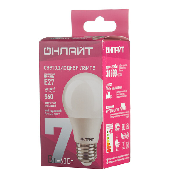 Лампа Онлайт светодиодная 7Вт, цветность 4К,Е27.