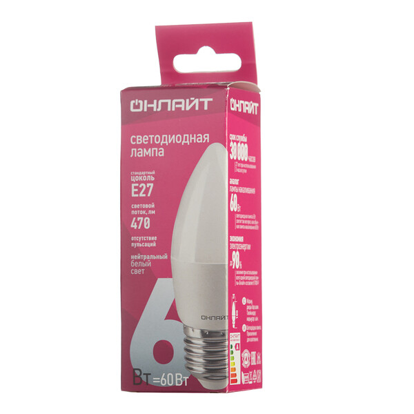 Лампа Онлайт, 6Вт, цветность 4К,Е27.