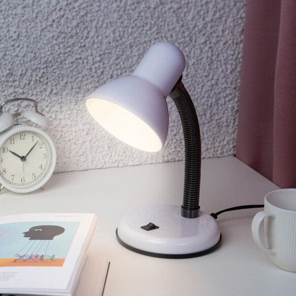 Светильник может использоваться с лампой накаливания, компактной люминесцентной лампой (КЛЛ) или светодиодной (LED) лампой. Устойчивое основание. Металлический плафон. Наклон и поворот плафона в любом направлении.